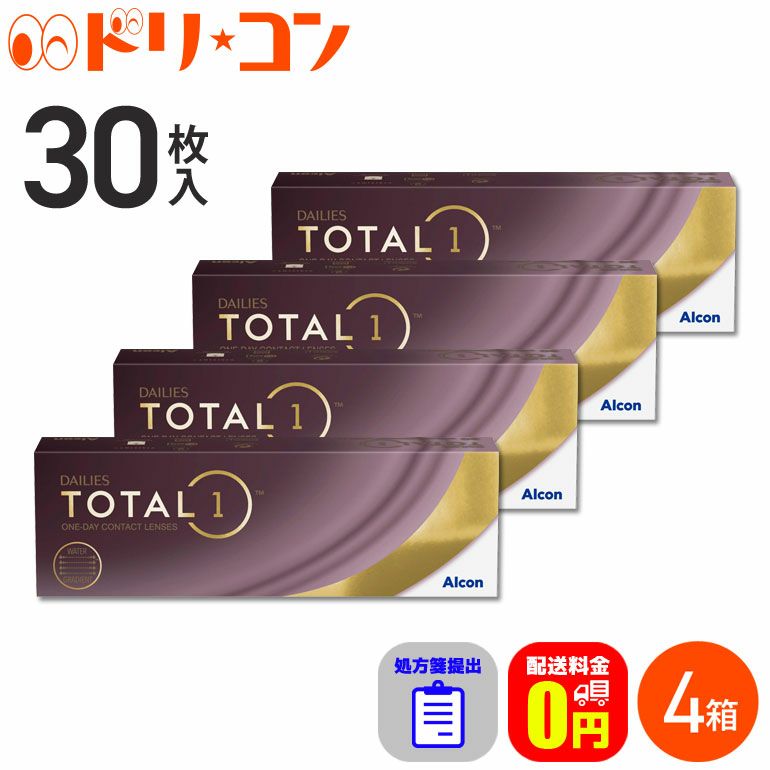 ☆処方箋提出☆【送料無料】デイリーズトータルワン 30枚入り 4箱セット / 1日使い捨てコンタクトレンズ ワンデー DAILIES TOTAL1 クリアレンズ アルコン 生感覚レンズ シリコーンハイドロゲル うるおい 酸素たっぷり 乾燥 充血 何もつけていないような瞳 快適 UVカット 紫外線