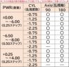・CYLが-2.25の場合:PWR(パワー)はマイナスのみ、乱視軸90°はPWR(パワー)-6.00まで