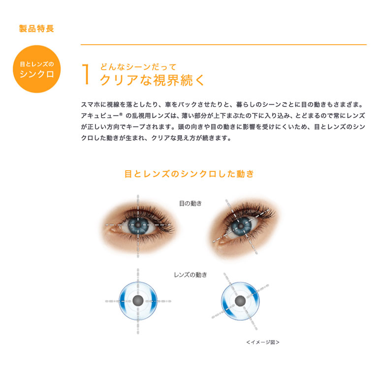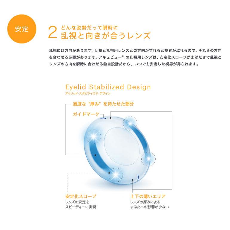 1どんな向きで付けても、数回のまばたきで、乱視とレンズの報告が瞬時に合致