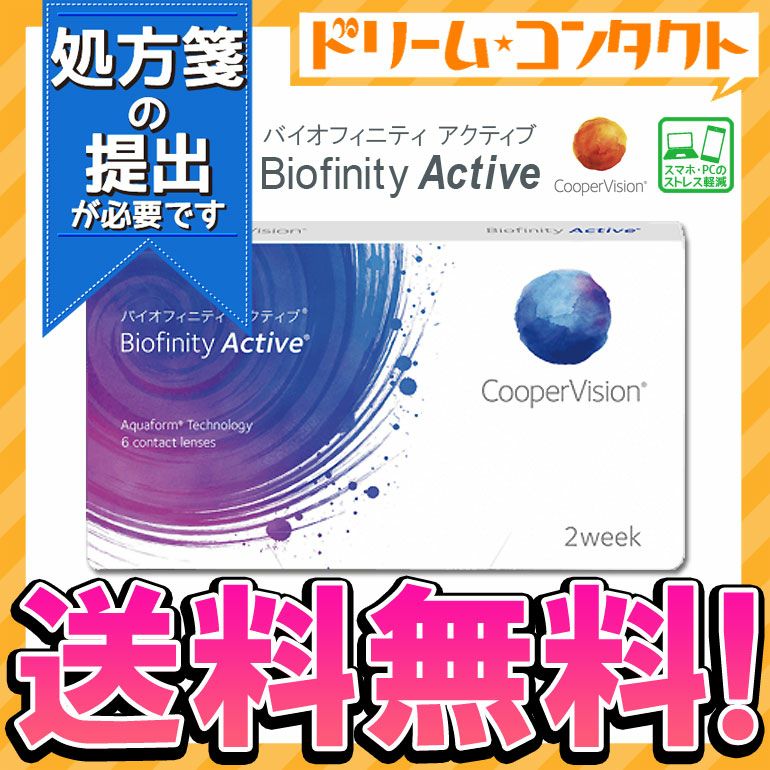 ☆処方箋提出☆ バイオフィニティアクティブ 6枚入り 6箱セット ※近用サポート度数+0.25(加入度数[ADD]) 2week Biofinity Active クーパービジョン クリアレンズ【送料無料】