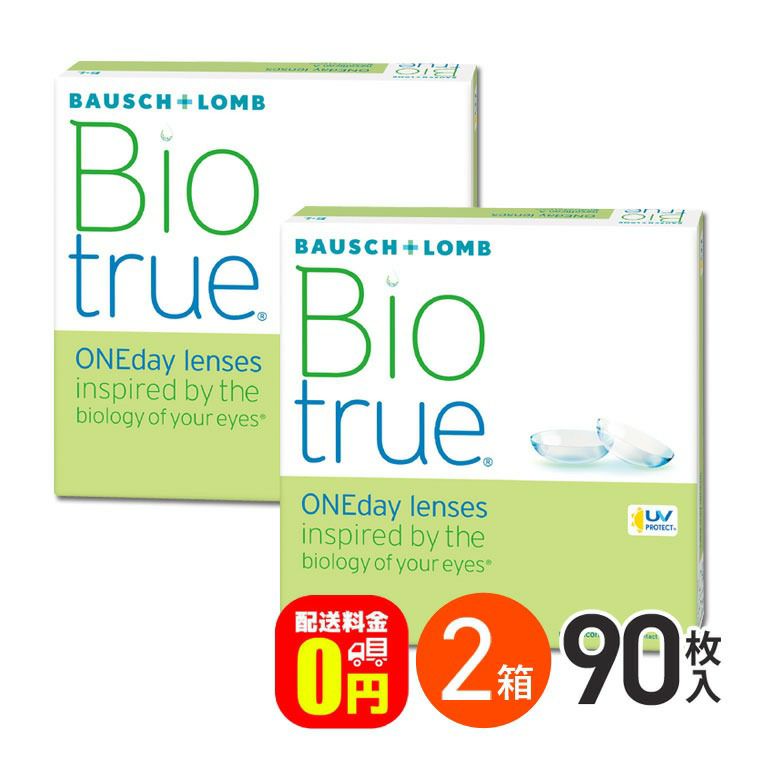 【送料無料】バイオトゥルーワンデー 90枚入 2箱セット / 1日使い捨てコンタクトレンズ ワンデー ボシュロム Bausch&Lomb うるおい UVカット 紫外線 クリアレンズ 目に優しい 高含水 酸素 なめらか 自然 近視 大容量