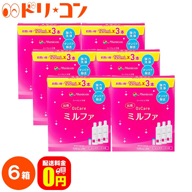 【送料無料】抗菌O2ケアミルファ (120ml×3) 6箱セット ハードレンズ用洗浄・保存・タンパク除去液 メニコン