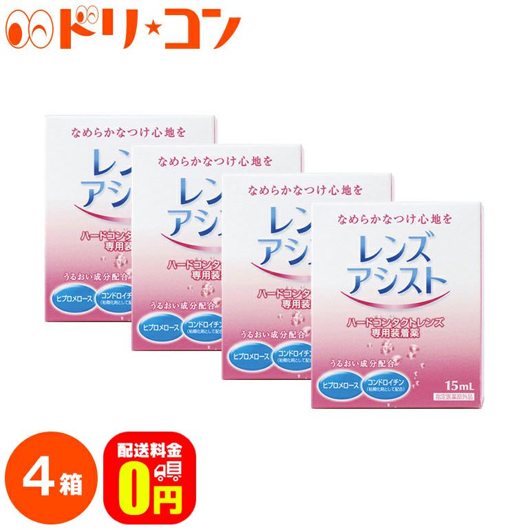 【送料無料】レンズアシスト 15ml 4箱セット ハードレンズ用 エイコー ケア用品 装着液