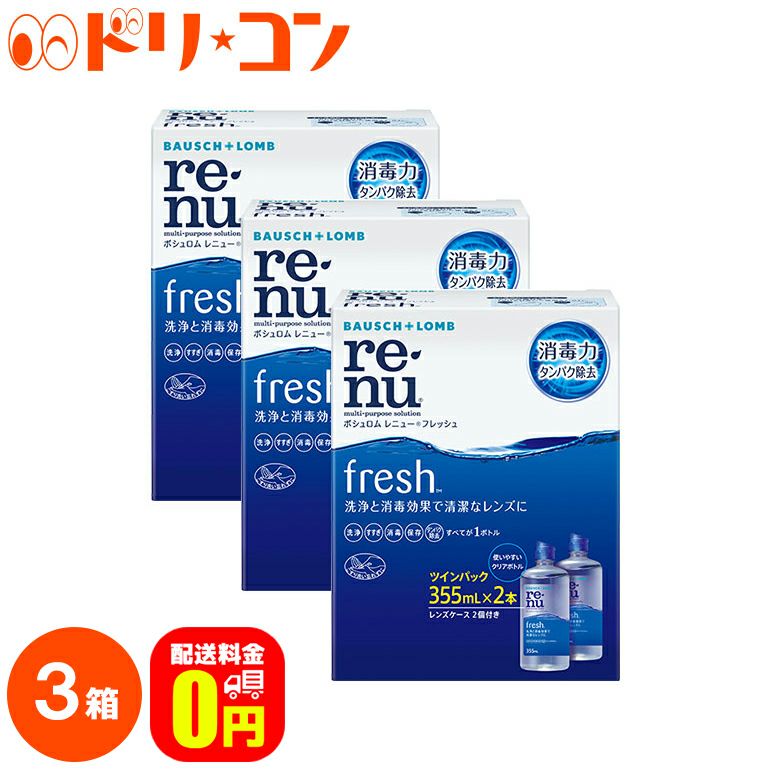 【送料無料】レニューフレッシュツインパック(355ml×2)3箱セット ソフトレンズ用洗浄・すすぎ・消毒(保存)液 ボシュロム