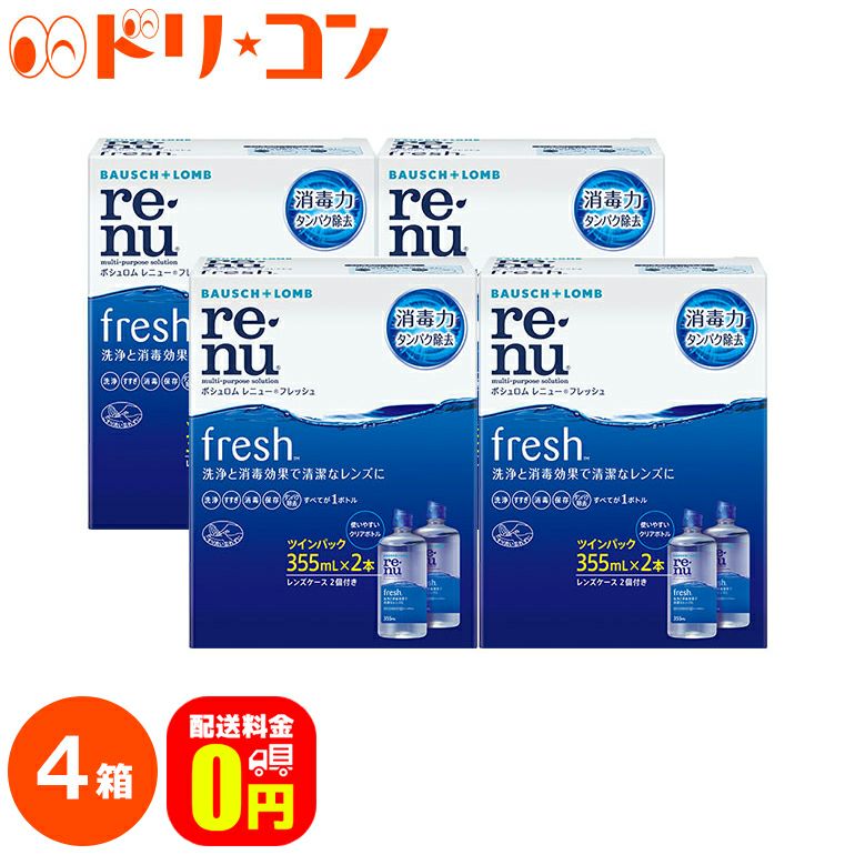 【送料無料】レニューフレッシュツインパック(355ml×2)4箱セット ソフトレンズ用洗浄・すすぎ・消毒(保存)液 ボシュロム