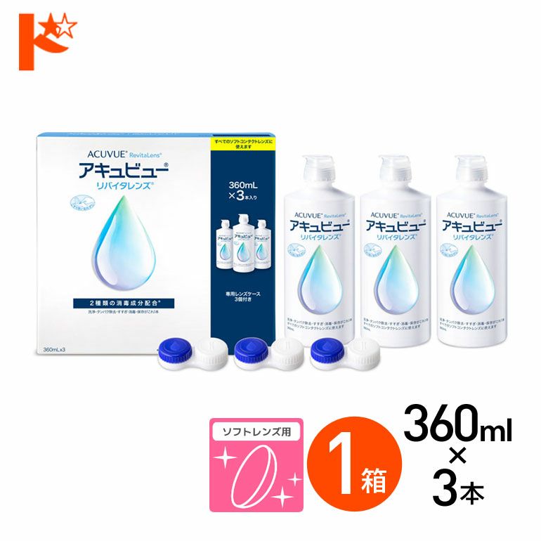 アキュビューリバイタレンズ (360ml×3) 1箱 / アキュビュー エイエムオー AMO ソフトコンタクトレンズ洗浄液 消毒液 保存液 タンパク除去 すすぎ こすり洗い MPS