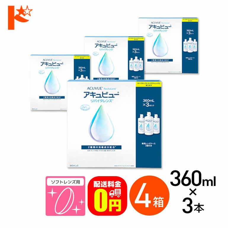 【送料無料】アキュビューリバイタレンズ (360ml×3) 4箱セット / アキュビュー エイエムオー AMO ソフトコンタクトレンズ洗浄液 消毒液 保存液 タンパク除去 すすぎ こすり洗い MPS