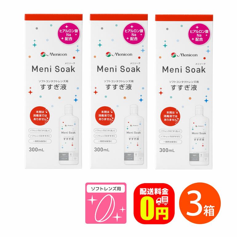 【送料無料】メニソーク 300ml 3箱 ソフトコンタクトレンズの洗浄 保存液 すすぎ液 メニコン