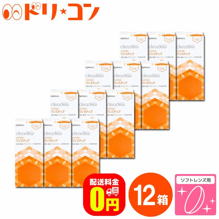 【送料無料】オフテクス クリアデュー ハイドロ:ワンステップ 28日分 4週間パック 360ml 12箱セット 専用レンズケース付き ソフトレンズ用 消毒・洗浄・すすぎ・保存液 ポビドンヨード 1本ケア cleadew ophtecs ファーストケア後継品