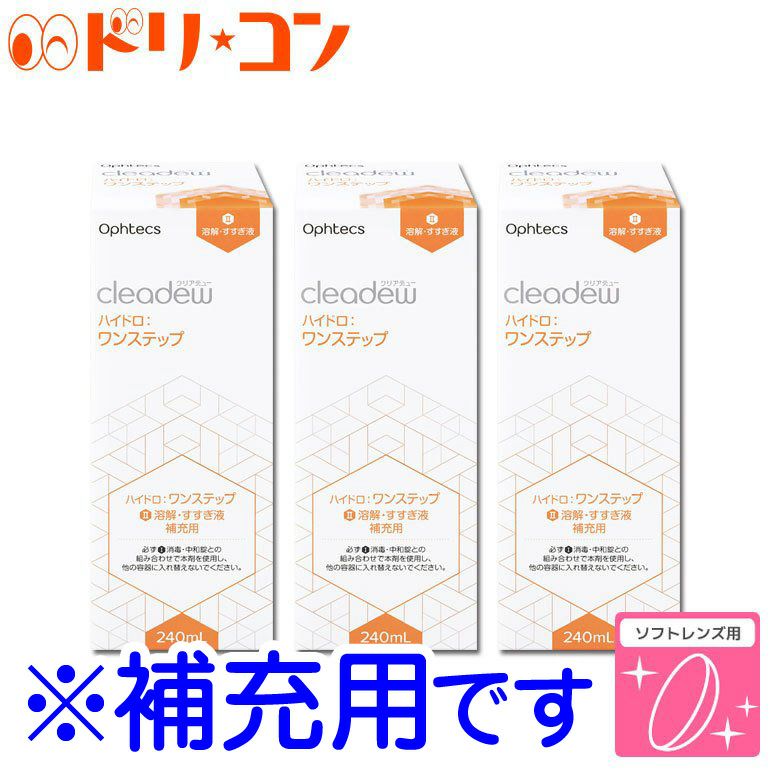 オフテクス クリアデュー ハイドロ:ワンステップ 専用溶解・すすぎ液 補充用 240ml 3本セット オフテクス ソフトレンズ用 ポビドンヨード cleadew ophtecs ファーストケア後継品