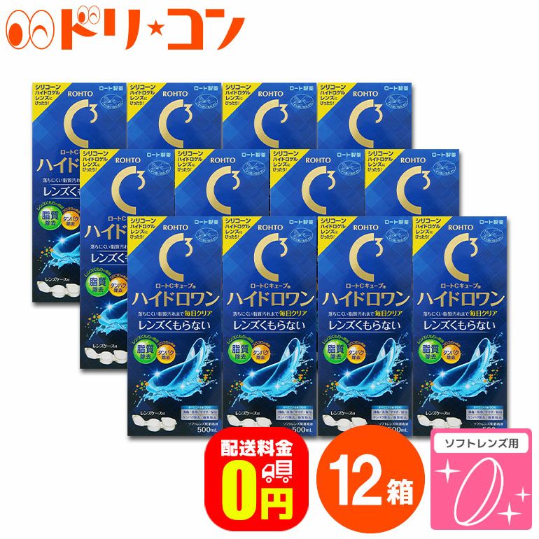 【送料無料】ロートCキューブ ハイドロワン 500mL 12箱セット / ソフトコンタクトレンズ用消毒液 ケア用品 こすり洗い すすぎ 消毒 保存 シリコーンハイドロゲルレンズ対応 ソフトレンズ レンズケース付 脂質除去 タンパク除去 ROHTO ロート製薬