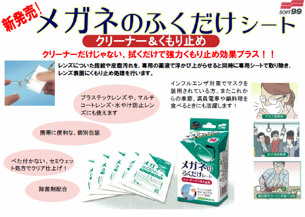 メガネのふくだけシート ソフト99【クリーナー&くもり止め】
