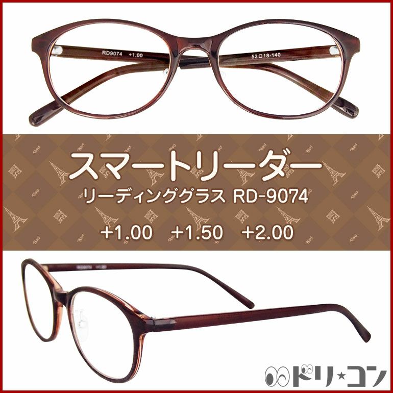 スマートリーダー【RD-9074】リーディンググラス 老眼鏡 シニアグラス 読書 ブラウン ウェリントン +1.00 +1.50 +2.00 青山眼鏡 ※各種調整及び度付レンズへの加工不可