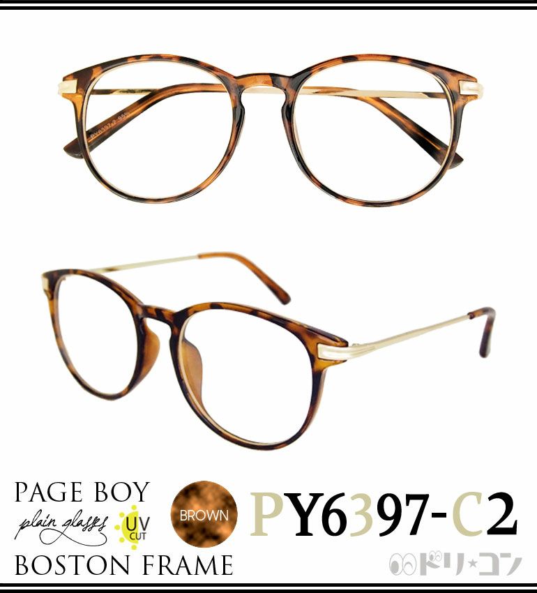 伊達メガネ【PY6397】 UVカット付き 全3種 ボストンフレーム セルフレーム 青山眼鏡 PAGEBOY ページボーイ ブラック デミブラウン クリアホワイト ※伊達メガネの為、各種調整及び度付レンズへの加工不可