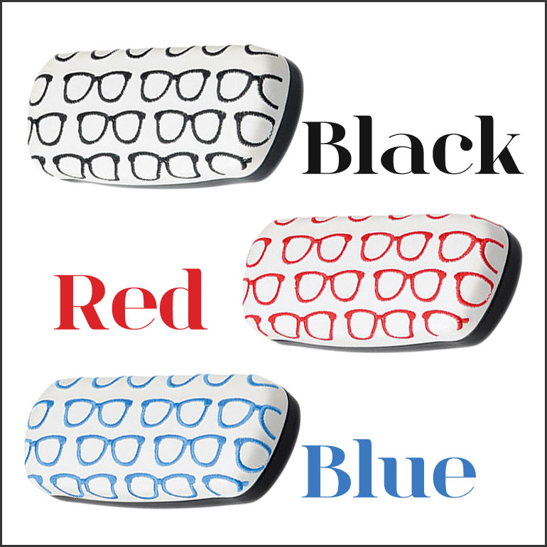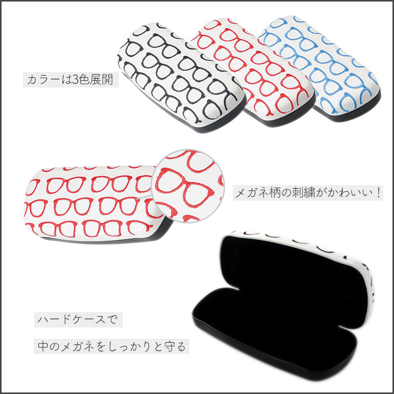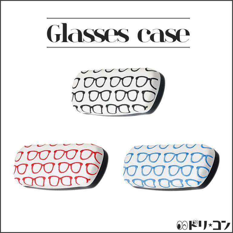 メガネモチーフ柄 メガネケース / 名古屋眼鏡 眼鏡 小物入れ サングラスケース メガネケース メガネ柄 刺繍 ブラック レッド ブルー