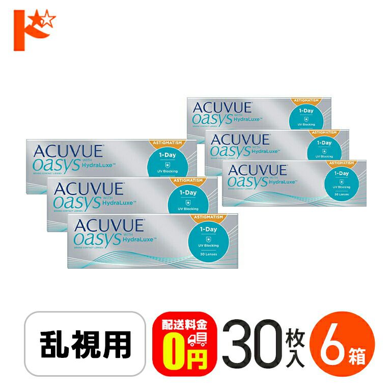 【送料無料】ワンデーアキュビューオアシス乱視用 30枚入 6箱セット / J&J ジョンソン&ジョンソン トーリック 1日使い捨てコンタクトレンズ 乱視 1day 紫外線 うるおい成分 シリコーンハイドロゲル ACUVUE
