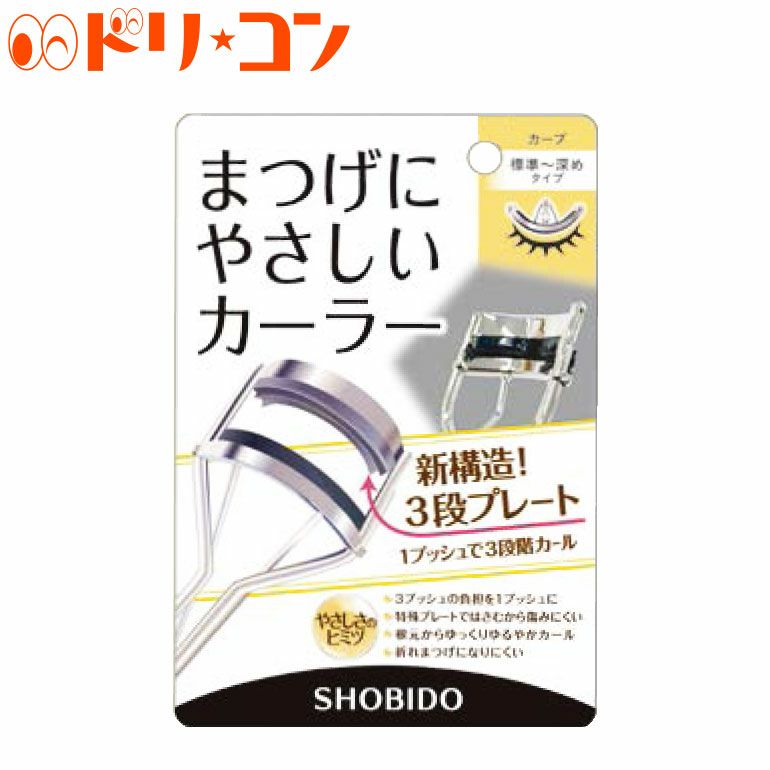 まつげにやさしいカーラー 標準~深めタイプ SPV70514 / 粧美堂株式会社 まつげカール まつげカーラー 独自構造 3段プレート 特殊ラバー 幅広キャッチャー ゆるやかカール まつげにやさしい 折れまつげ対策 ナチュラルカール メイク道具 アイメイク