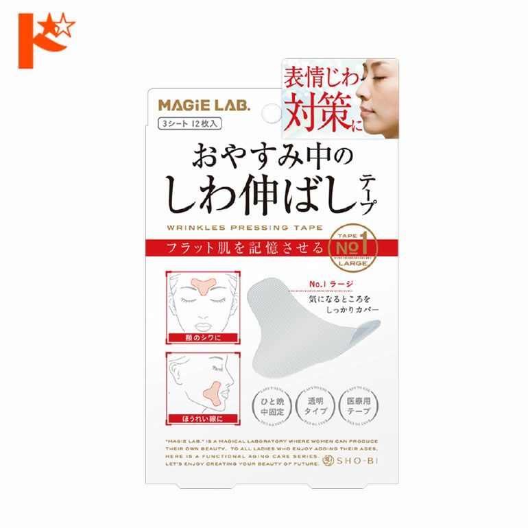 マジラボしわ伸ばしテープ MAGiELABしわ伸ばしテープ MG22115 ラージタイプ 3シート12枚入 エイジングケア 美容パック マジラボ 表情じわ対策 医療用テープ 粧美堂 眉間のしわ 額 ほうれい線 口元 下あご リフトアップ ストレッチテープ 小顔 美顔 一点集中カバー ドリコン