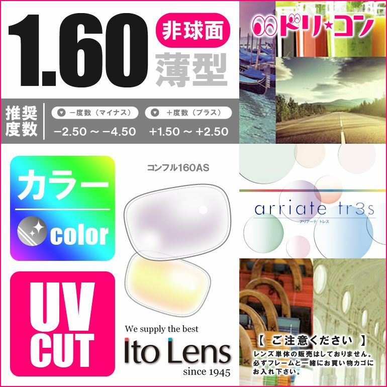 【オプション】ネコメガネ度付き超薄型カラーレンズ 1.60非球面【コンフル160AS】 2枚1組