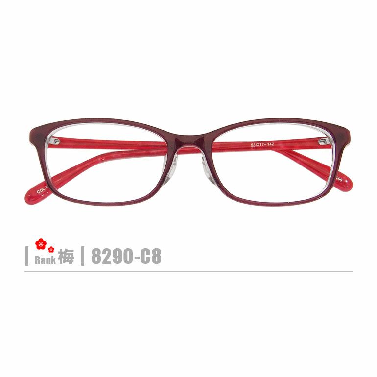 梅ネコメガネ【8290-C8】(セルフレーム+薄型レンズ+メガネ拭き+ケース付き)赤系