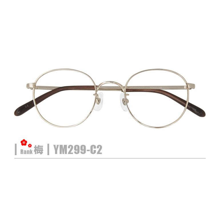 梅ネコメガネ【YM299-C2】(メタルフレーム+薄型レンズ+メガネ拭き+ケース付き)ゴールド系