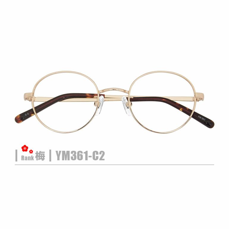 梅ネコメガネ【YM361-C2】(メタルフレーム+薄型レンズ+メガネ拭き+ケース付き)ゴールド系