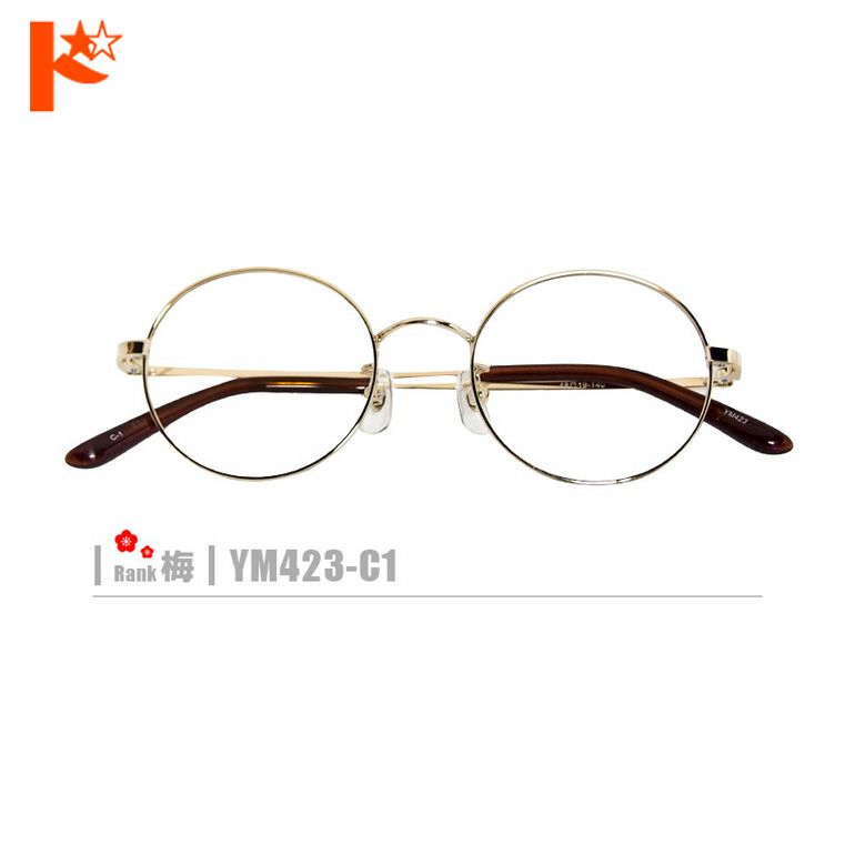 梅ネコメガネ【YM423-C1】(メタルフレーム+薄型レンズ+メガネ拭き+ケース付き)ゴールド系