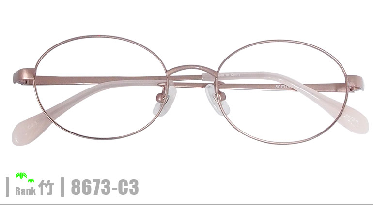 竹ネコメガネ【8673-C3】(メタルフレーム+薄型レンズ+メガネ拭き+ケース付き)ピンク系