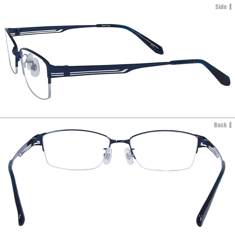 竹ネコメガネ【8703-NV】(メタルフレーム+薄型レンズ+メガネ拭き+ケース付き)紺系