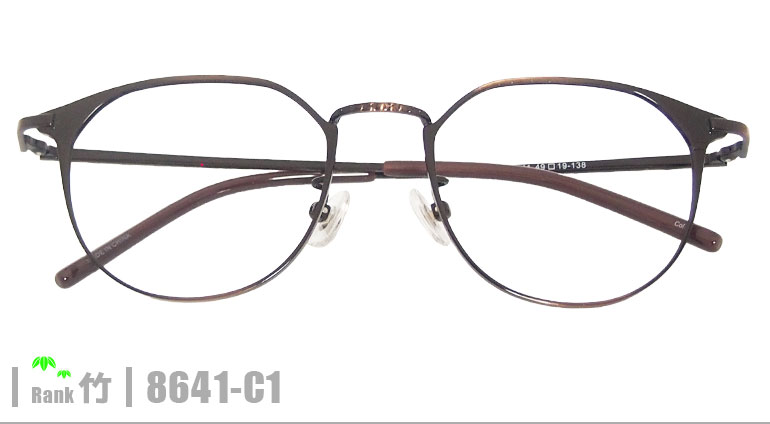 竹ネコメガネ【8641-C1】(メタルフレーム+薄型レンズ+メガネ拭き+ケース付き)茶系