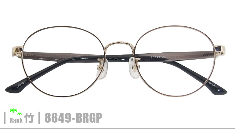 竹ネコメガネ【8649-BRGP】(メタルフレーム+薄型レンズ+メガネ拭き+ケース付き)銀系金系シルバー系ゴールド系※素材の特性上、顔幅の調整はできません。※レンズ縁のカラーはブラウンです。