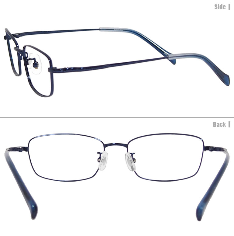 竹ネコメガネ【8650-NV】(メタルフレーム+薄型レンズ+メガネ拭き+ケース付き)紺系青系