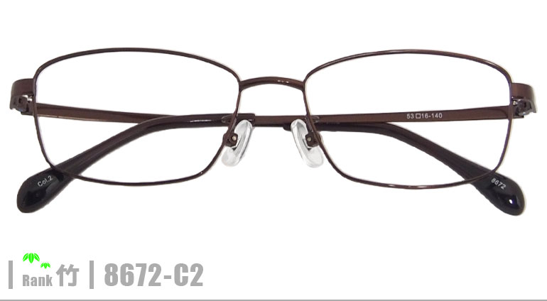 竹ネコメガネ【8672-C2】(メタルフレーム+薄型レンズ+メガネ拭き+ケース付き)茶系