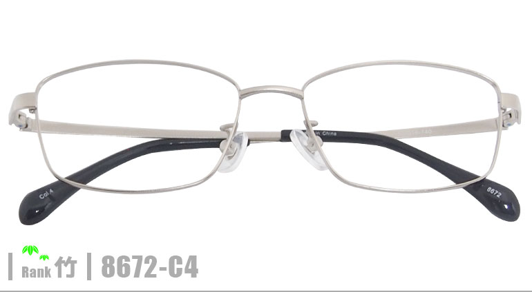 竹ネコメガネ【8672-C4】(メタルフレーム+薄型レンズ+メガネ拭き+ケース付き)銀系シルバー系