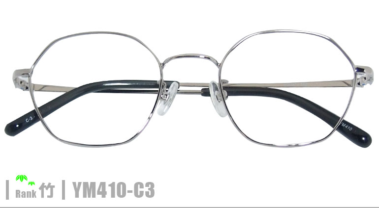 竹ネコメガネ【YM410-C3】(メタルフレーム+薄型レンズ+メガネ拭き+ケース付き)シルバー系