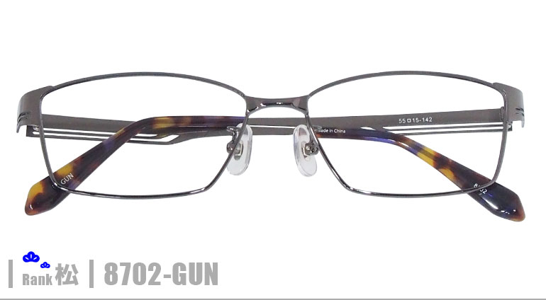 松ネコメガネ【8702-GUN】(ステンレスフレーム+薄型レンズ+メガネ拭き+ケース付き)銀系シルバー系 ステンレス素材