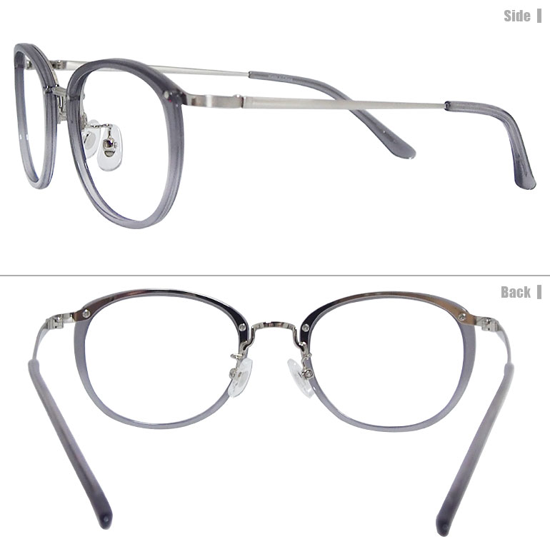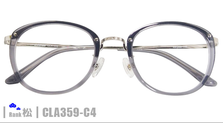 松ネコメガネ【CLA359-C4】(鼻パッド付コンビフレーム+薄型レンズ+メガネ拭き+ケース付き)グレイ系