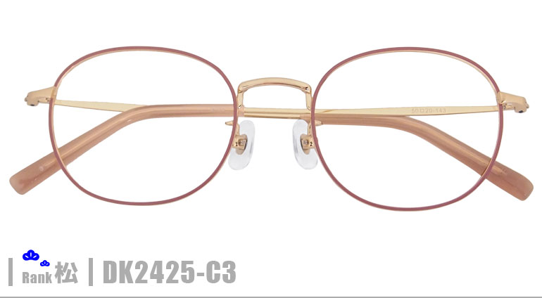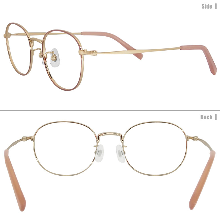 松ネコメガネ【DK2425-C3】(メタルフレーム+薄型レンズ+メガネ拭き+ケース付き)ピンク系ゴールド系※レンズ縁のカラーはピンクです。
