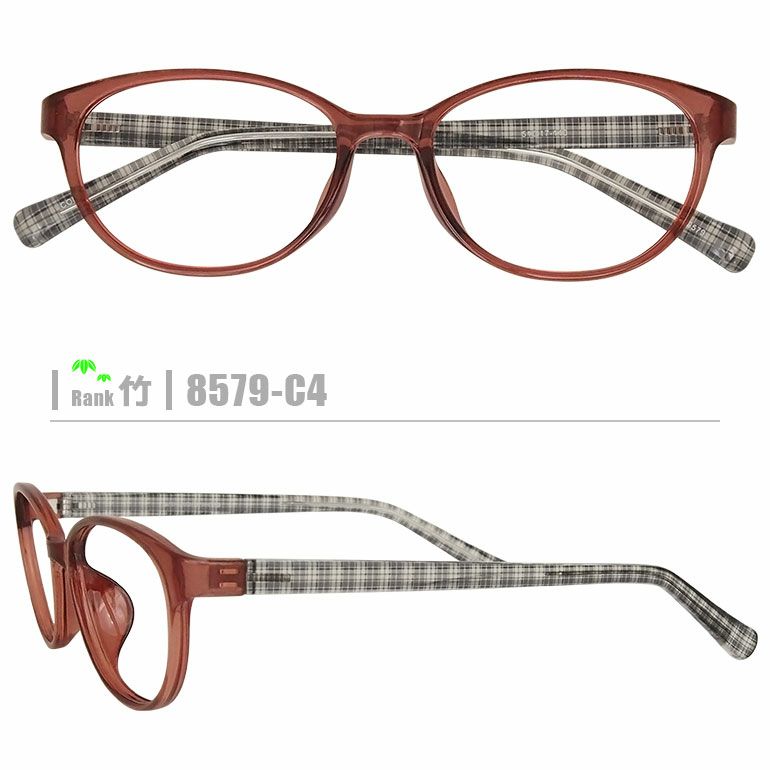 竹ネコメガネ【8579-C4】(セルフレーム+薄型レンズ+メガネ拭き+ケース付き)赤系柄系 ※素材の特性上、顔幅の調整は出来ません。