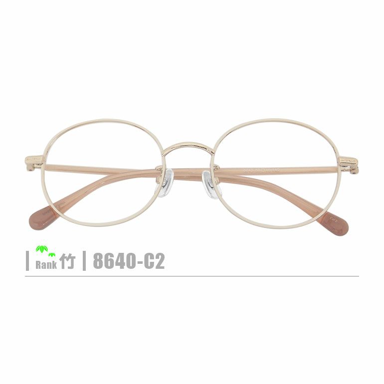 竹ネコメガネ【8640-C2】(メタルフレーム+薄型レンズ+メガネ拭き+ケース付き)白系シルバー系※レンズ縁のカラーはホワイトです。