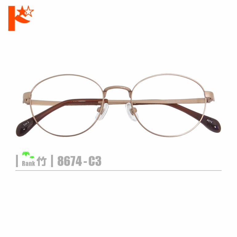 竹ネコメガネ【8674-C3】(メタルフレーム+薄型レンズ+メガネ拭き+ケース付き)茶系