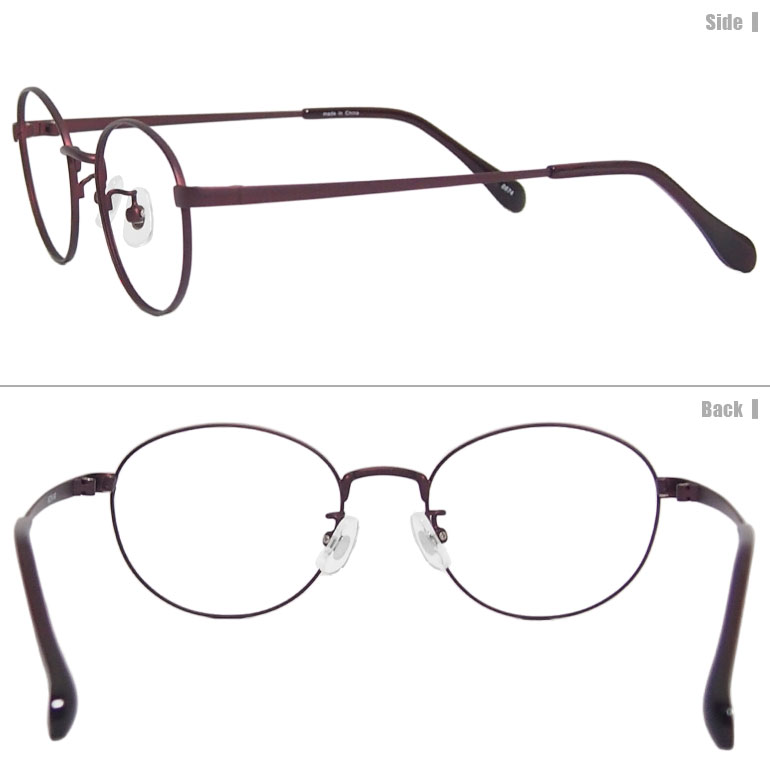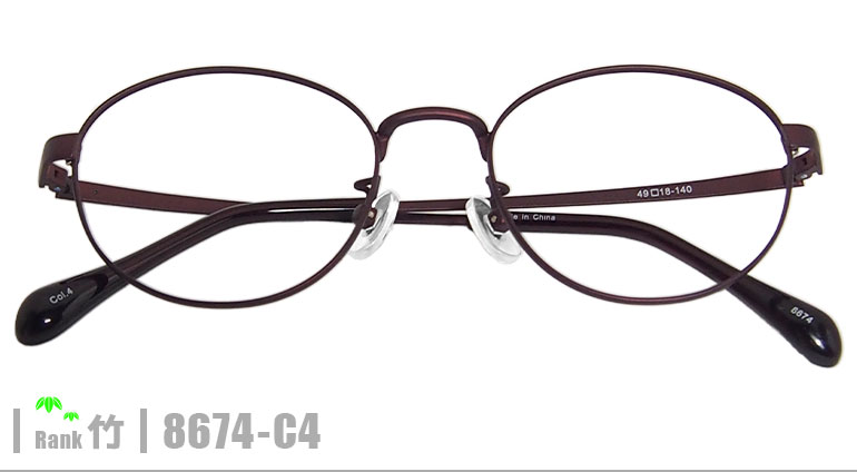 竹ネコメガネ【8674-C4】(メタルフレーム+薄型レンズ+メガネ拭き+ケース付き)赤系
