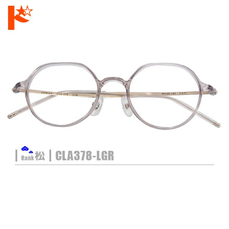 松ネコメガネ【CLA378-LGR】(鼻パッド付セルフレーム+薄型レンズ+メガネ拭き+ケース付き)ブラウン系茶系 ※素材の特性上、顔幅・奥行の調整は出来ません。