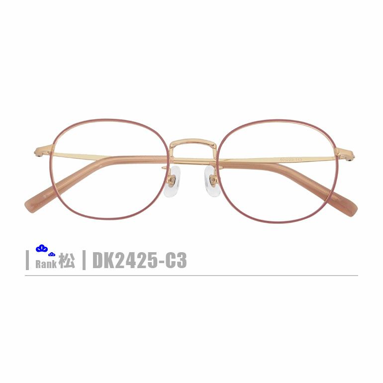 松ネコメガネ【DK2425-C3】(メタルフレーム+薄型レンズ+メガネ拭き+ケース付き)ピンク系ゴールド系※レンズ縁のカラーはピンクです。