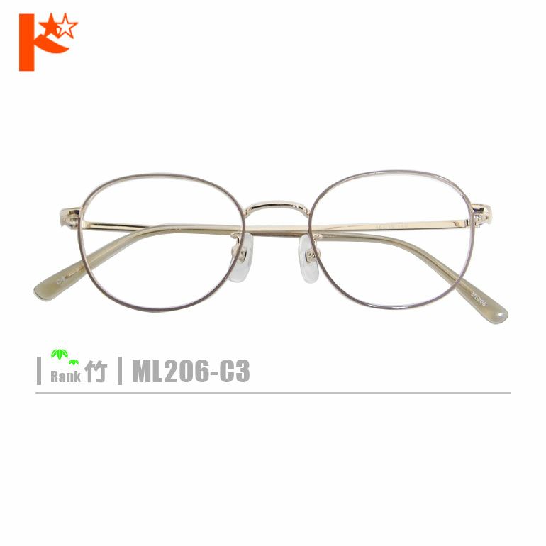 竹ネコメガネ【ML206-C3】(メタルフレーム+薄型レンズ+メガネ拭き+ケース付き)ゴールド系※レンズ縁のカラーはくすみブラウンです。