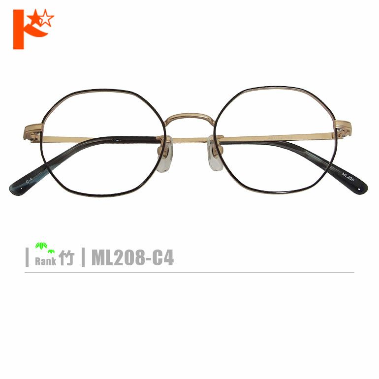 竹ネコメガネ【ML208-C4】(メタルフレーム+薄型レンズ+メガネ拭き+ケース付き)ゴールド系※素材の特性上、顔幅の調整はできません。※レンズ縁のカラーはブラックです。