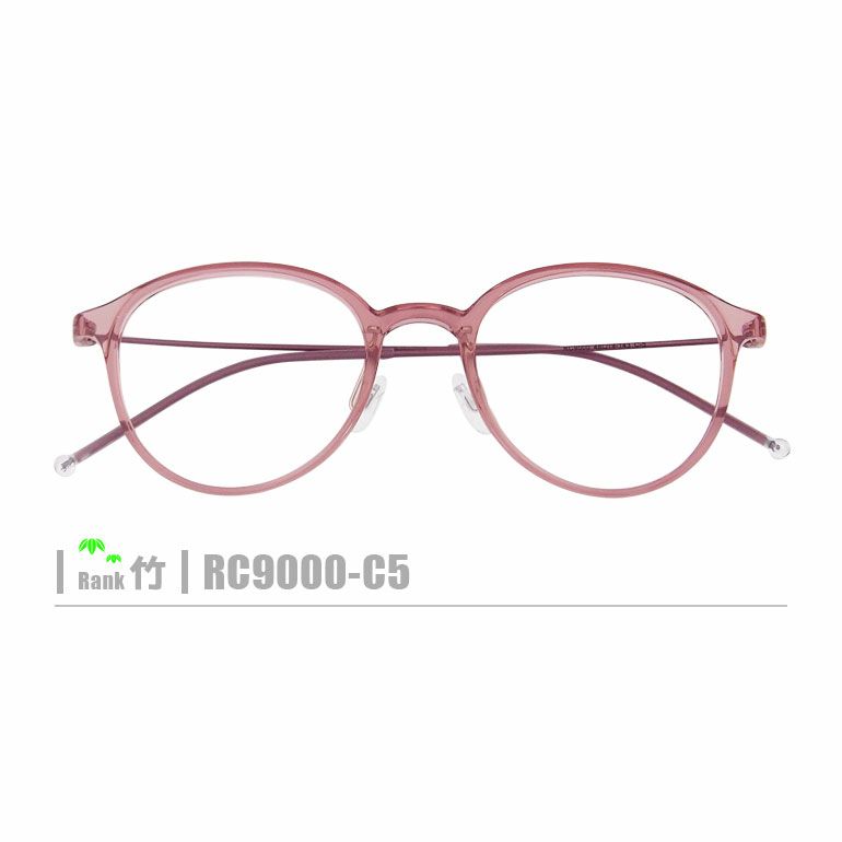 竹ネコメガネ【RC9000-C5】(鼻パッド付セルフレーム+薄型レンズ+メガネ拭き+ケース付き)ピンク系※素材の特性上、顔幅・奥行の調整は出来ません。