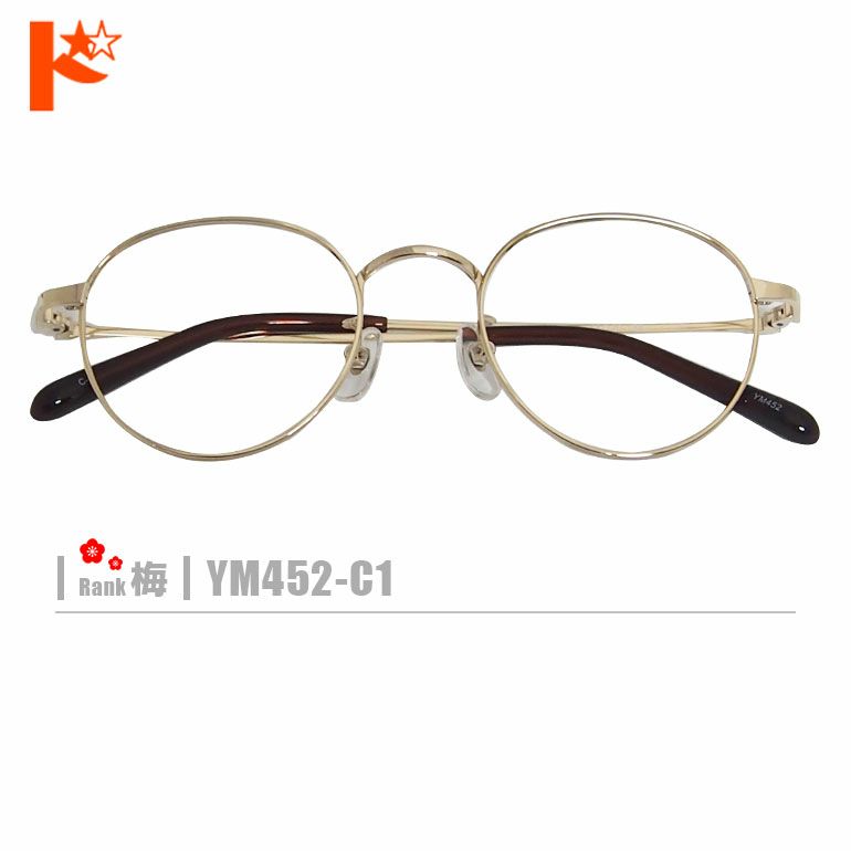 梅ネコメガネ【YM452-C1】(メタルフレーム+薄型レンズ+メガネ拭き+ケース付き)金系ゴールド系