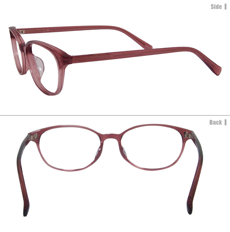 梅ネコメガネ【YS574-C2】(セルフレーム+薄型レンズ+メガネ拭き+ケース付き)ピンク系赤系
