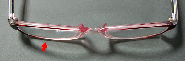 +(プラス)度数のレンズを使用した場合、レンズの中心にかけて厚みが出ますので、 レンズ縦幅が小さめのフレーム、またはフレーム自体の幅が細めですと、 レンズの中心部分がフレームからはみ出る場合がございます。 (※画像をご参照下さい。)